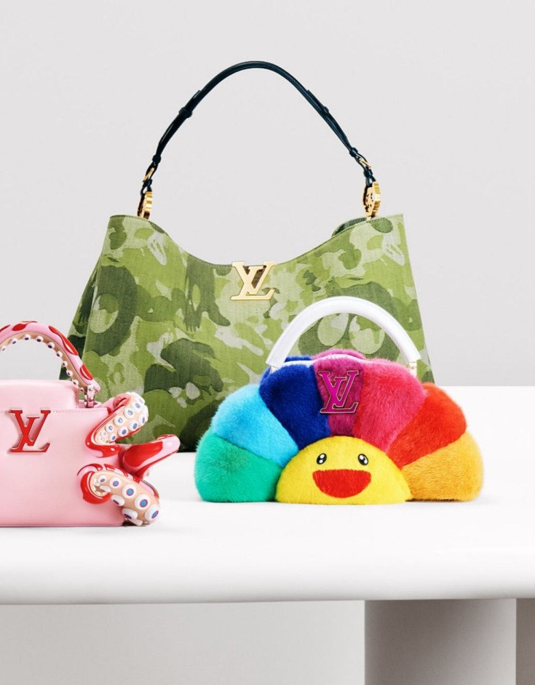 Louis Vuitton kembali kolaborasi dengan Takashi Murakami melalui koleksi Artycapucines VII, yang diperkenalkan di Art Basel Paris 2025. Koleksi ini menampilkan 11 tas Capucines dengan sentuhan Murakami yang khas, seperti colorful monogram, smiling flower, panda, jamur 3D, dan karakter Mr. DOB.