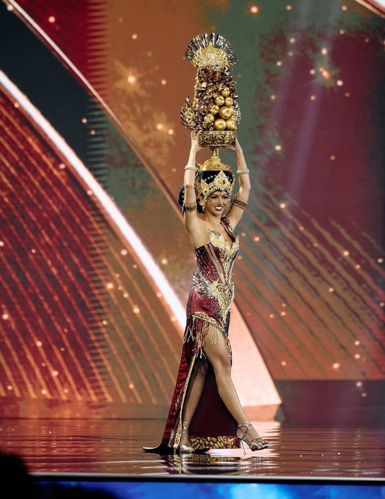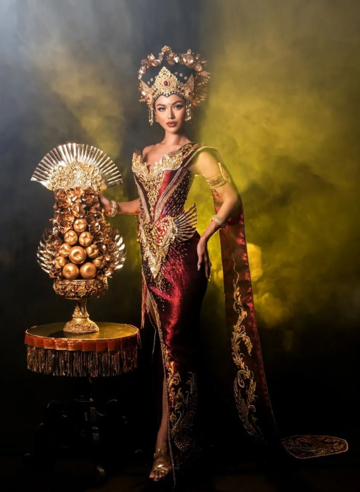 Sanly Liu berhasil menarik perhatian publik dengan penampilannya mengenakan kostum nasional “Bali Yadnya" pada ajang Miss Universe 2025. Kostum ini dirancang oleh desainer ternama Bali yaitu I Nyoman Inggi Kendran, yang terinspirasi dari tradisi sakral masyarakat Bali. Perpaduan warna merah dan emas serta detail bordir yang kaya menjadikan kostum ini tampak megah sekaligus sarat makna.